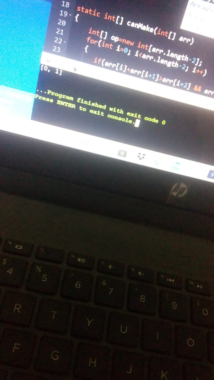 First day we won the game we are in lead. NowToday problems learning Outcomes: now we know how to take input as given in question (from 1st question). We know how to store the taken input in arrays. We know how to use Integer.parseInt() function. We learned how to apply logic like adding elements and …